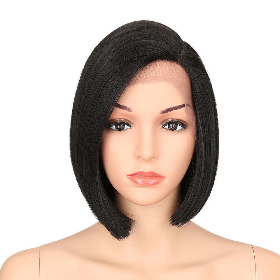 Noble Swiss For Black Women Yaki Straight Hair Synthetic Side Part Lace Front Wig Ombre Brown Heat Resistant Cosplay Bob Wigs
