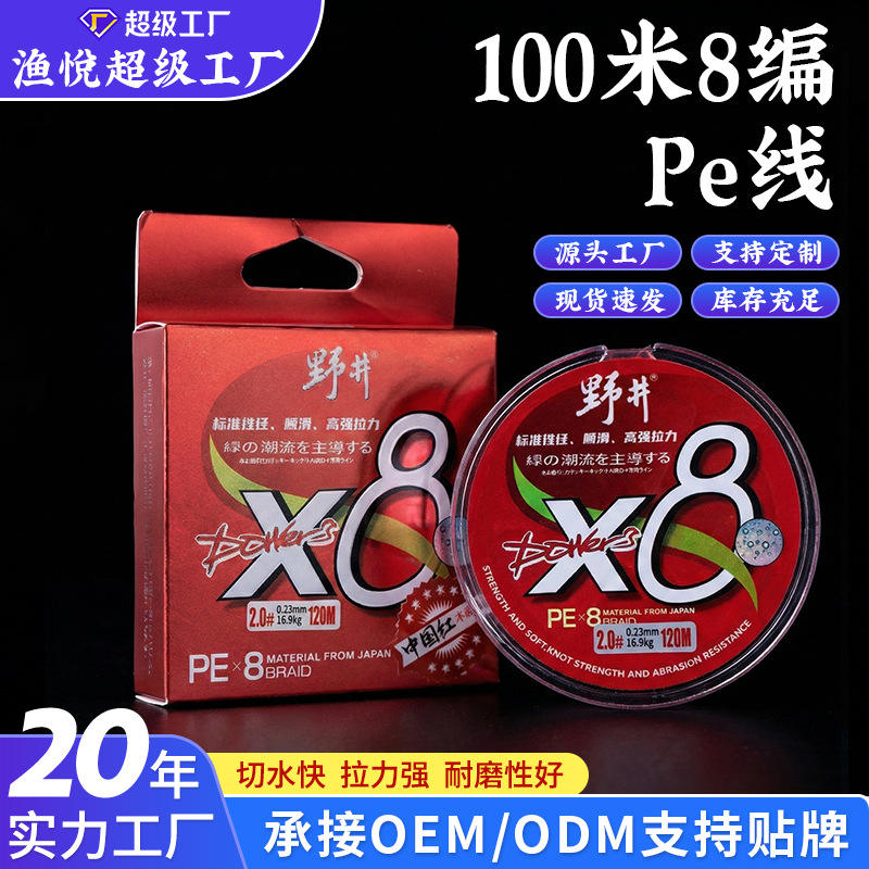 สายเบ็ดตกปลา Noi X8 PE Braid 2.0 120M ความแข็งแรงสูง สีแดง สำหรับตกปลาทะเลและตกปลาใต้น้ำ