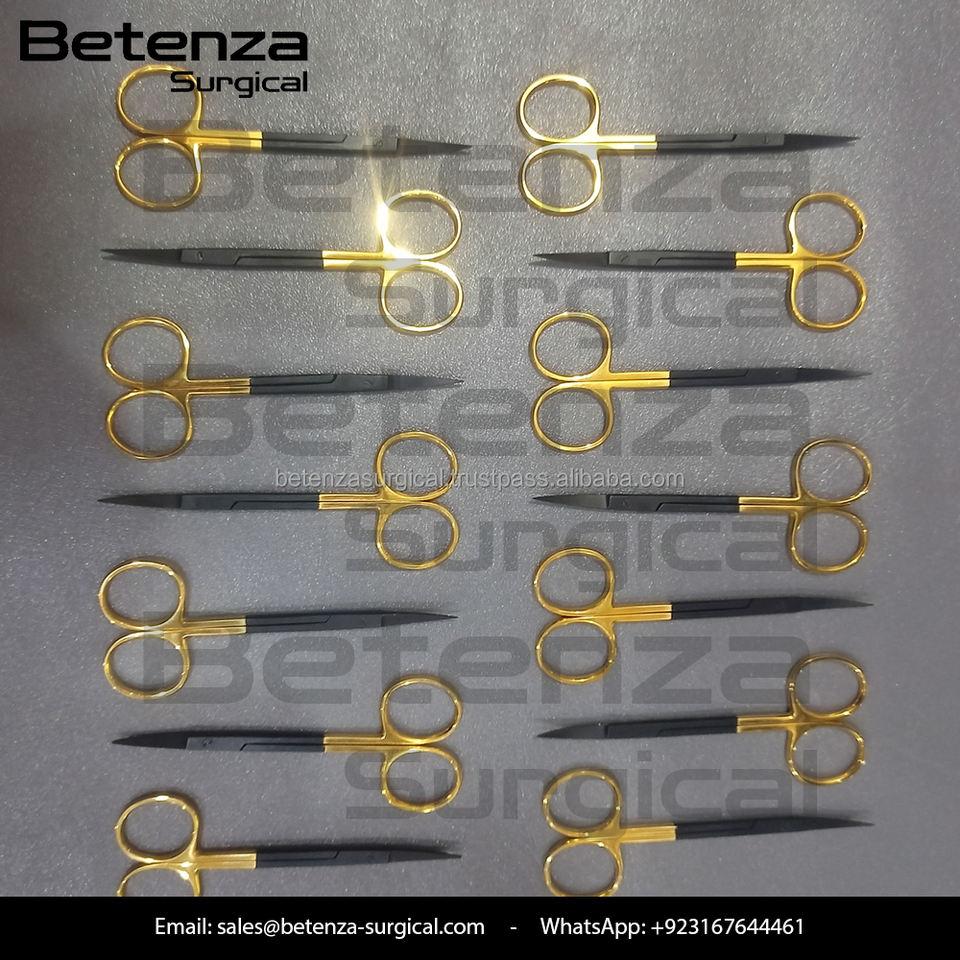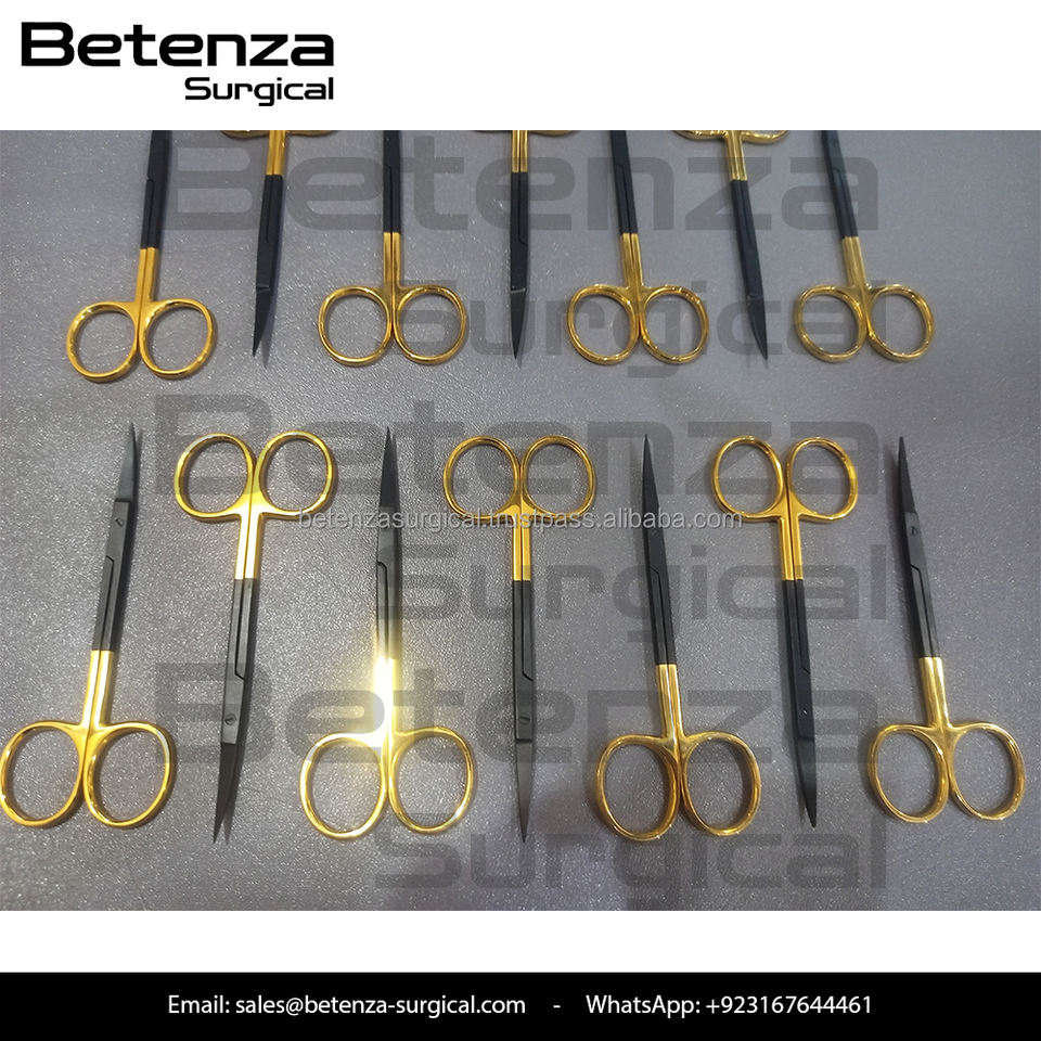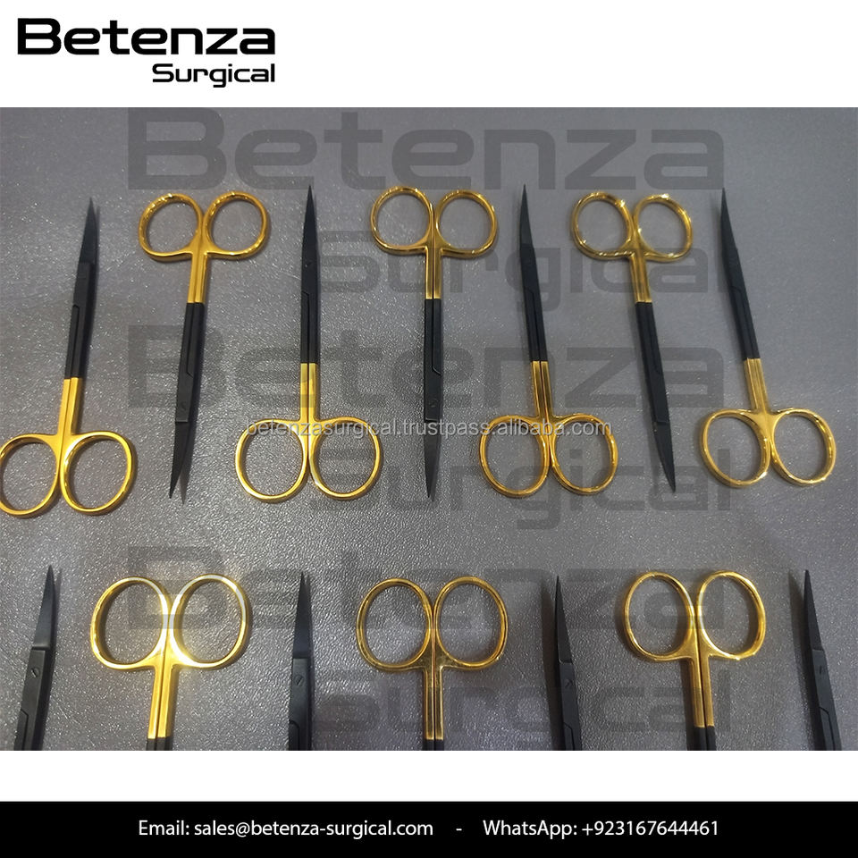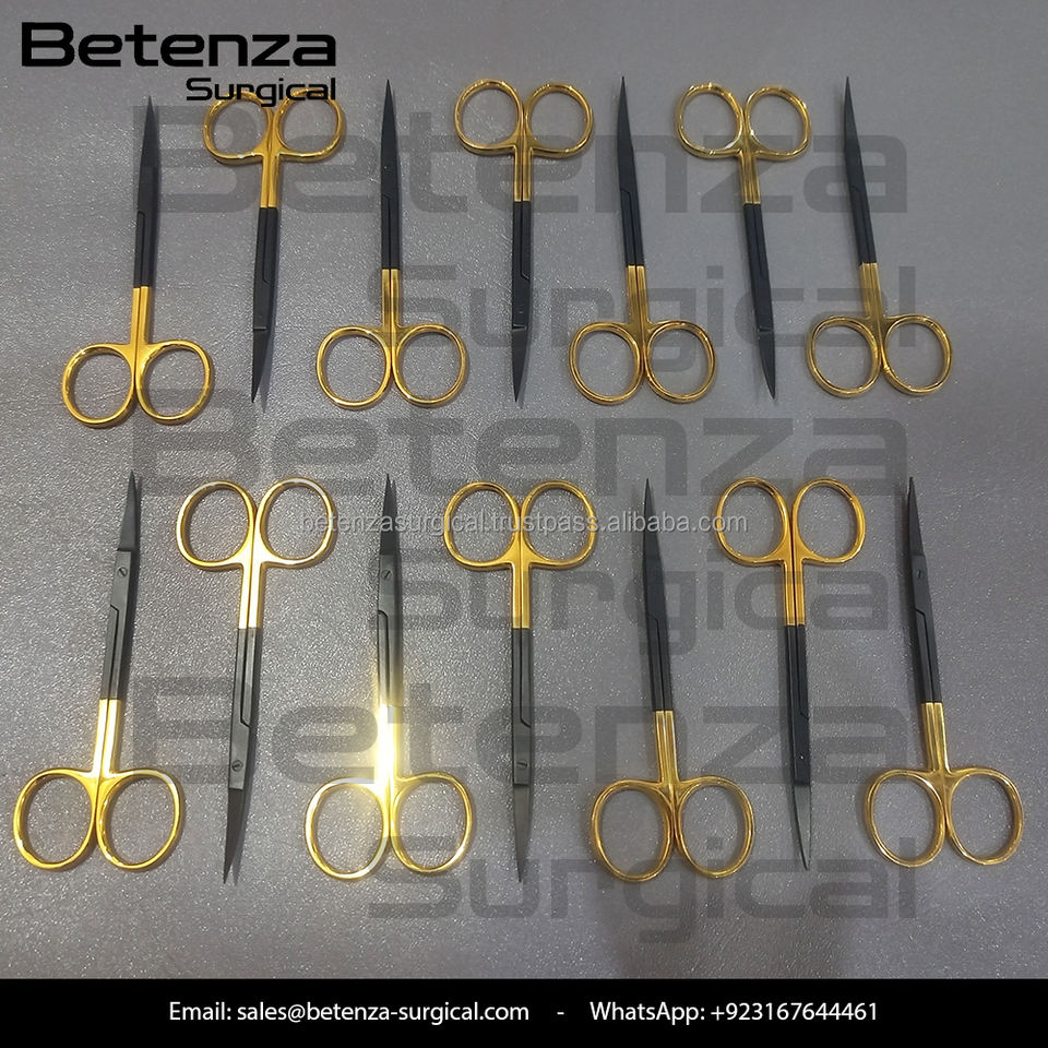 กรรไกรไอริสเคลือบสีดำ Noir Coated TC ขนาด 23 ซม. ด้ามจับ CVD สีทอง แบบใช้มือ สำหรับศัลยกรรมหู คอ จมูก และศัลยกรรมตกแต่ง