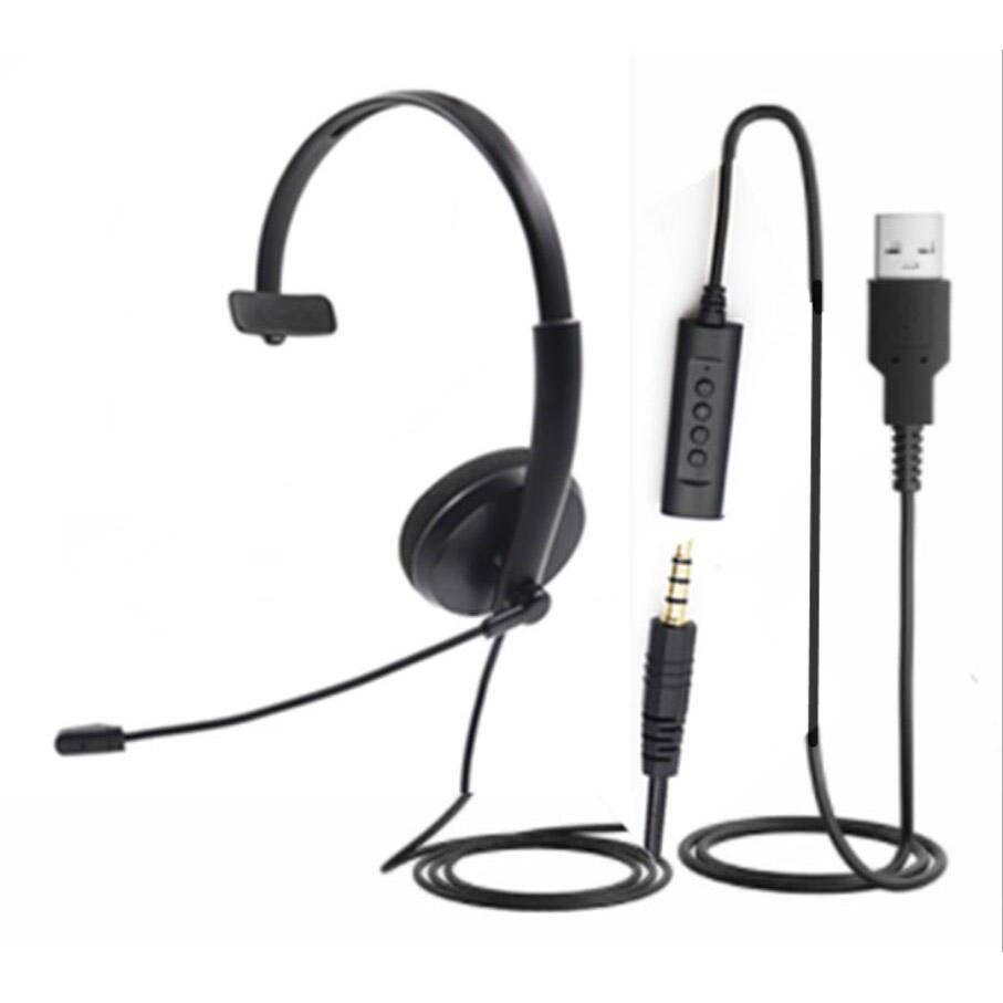 Noise cancelling call center monaural USB headset with microphone and QD cord DC 3.5mm jack for VOIP telemarket mobile phone