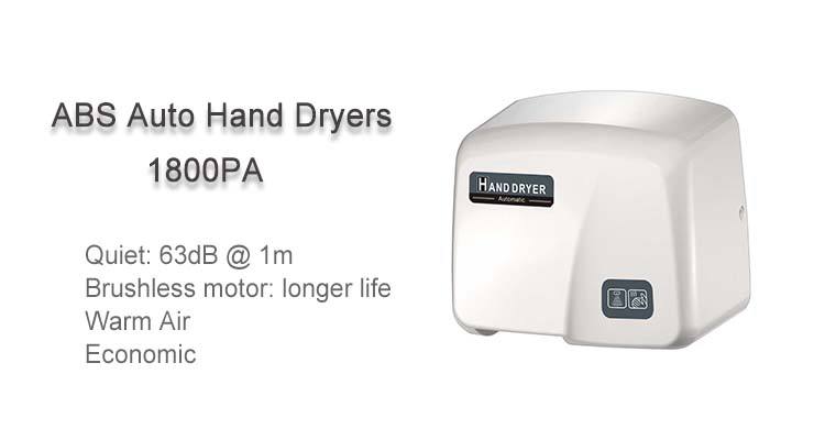 เครื่องเป่ามือไฟฟ้า1800W ดีไซน์พลาสติก ABS แบบเงียบสำหรับบ้านโรงเรียนโรงแรมหรือห้องน้ำรับประกัน3ปี