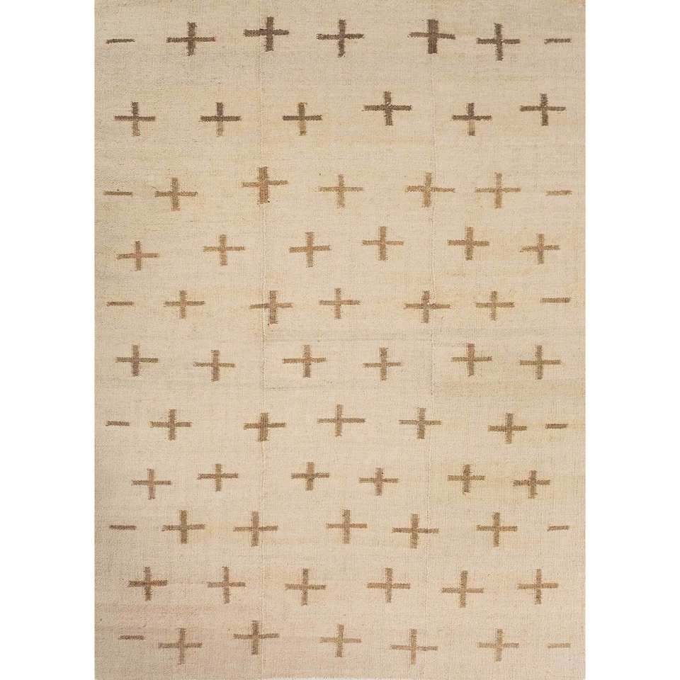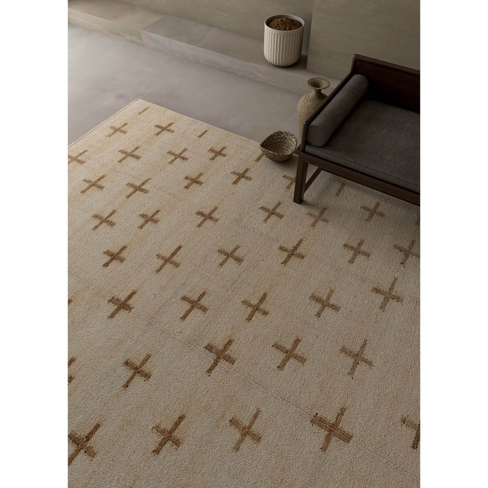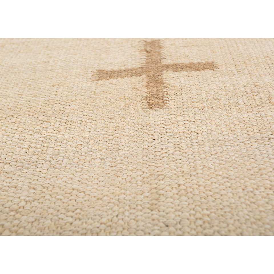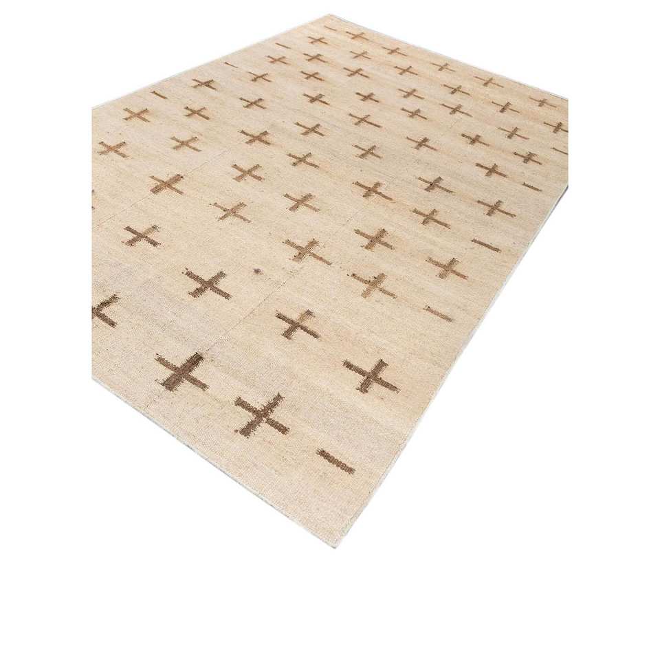 พรมปูพื้นลายเรขาคณิต Nomadic Threads รุ่น Adhm-07 สีงาช้าง ทำจากปอกระเจาและป่าน รูปทรงสี่เหลี่ยมผืนผ้า เหมาะสำหรับห้องโถง ห้องนอน ห้องนั่งเล่น ใช้ตกแต่งบ้าน