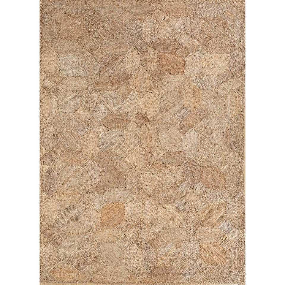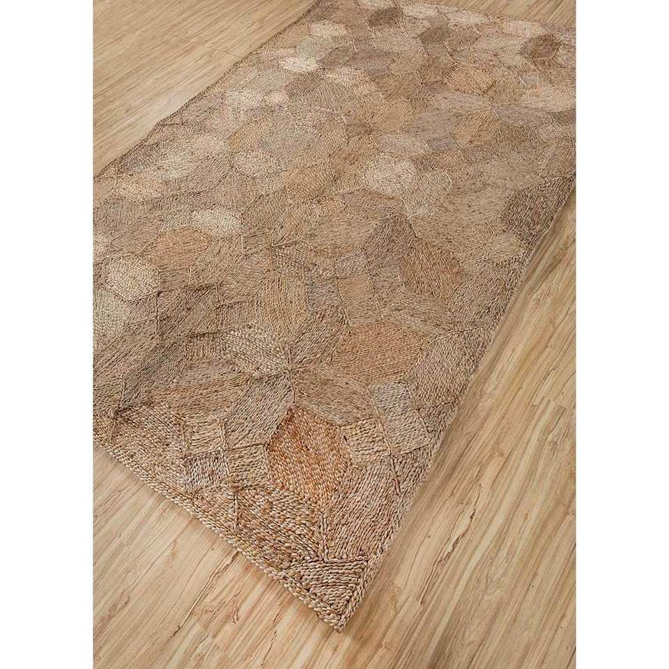 พรมทอแบนสีเบจและสีน้ำตาล Nomadic Threads ทำจากปอกระเจาและป่าน ขนาด 9x12 ฟุต ลายเรขาคณิตนามธรรม รูปทรงสี่เหลี่ยมผืนผ้า สำหรับห้องนั่งเล่น รุ่น PDJT-470