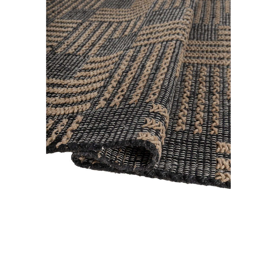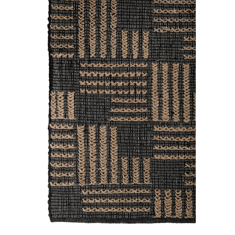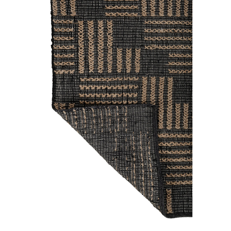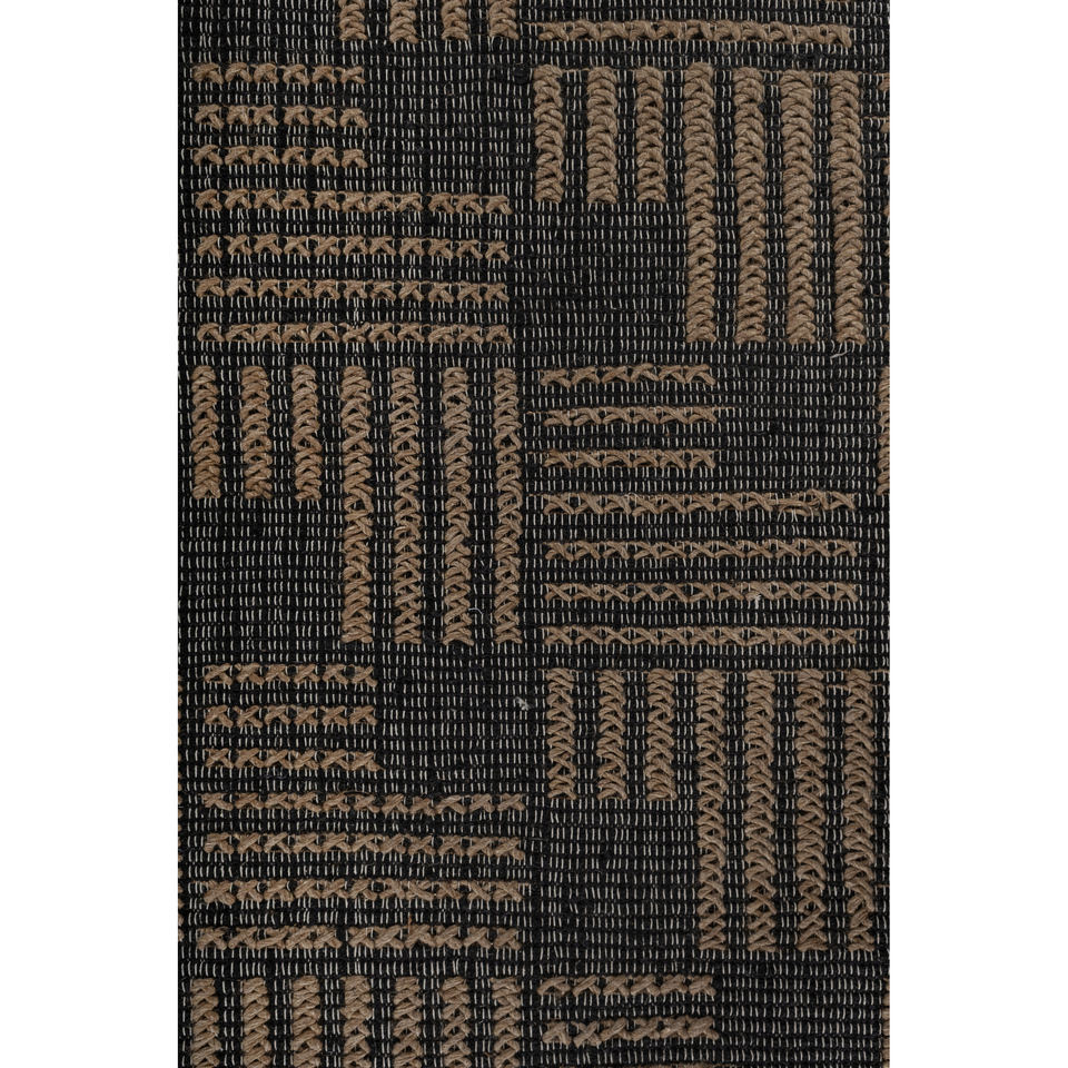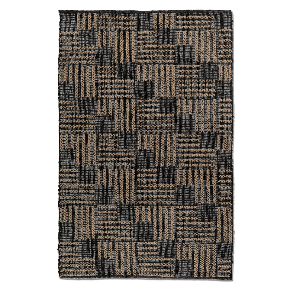 พรมปูพื้นลายเรขาคณิต Nomadic Threads รุ่น PDJT-223 ทำจากปอกระเจาและป่าน ทอแบบเรียบ สีเทาและสีดำ สำหรับห้องนั่งเล่น ห้องนอน และทางเดินของวัยรุ่น