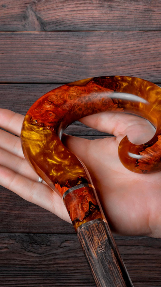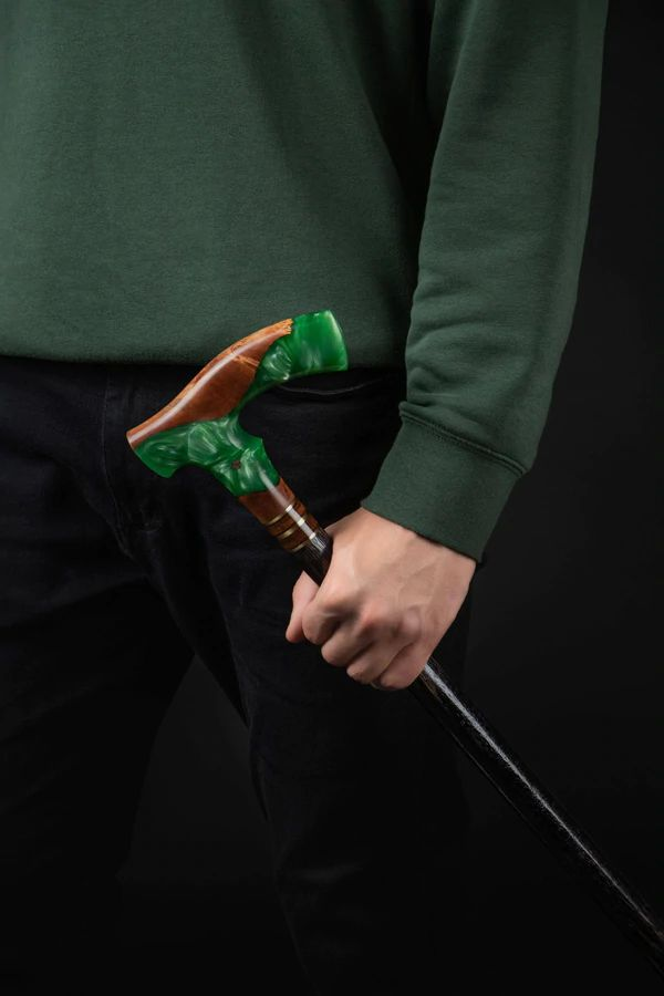 ไม้เท้าเดินทำจากเรซิ่นและไม้ ดีไซน์ทันสมัย เป็นมิตรกับสิ่งแวดล้อม พร้อมด้ามจับตามหลักสรีรศาสตร์ และฐานกันลื่น สำหรับใช้ภายในและภายนอกอาคาร