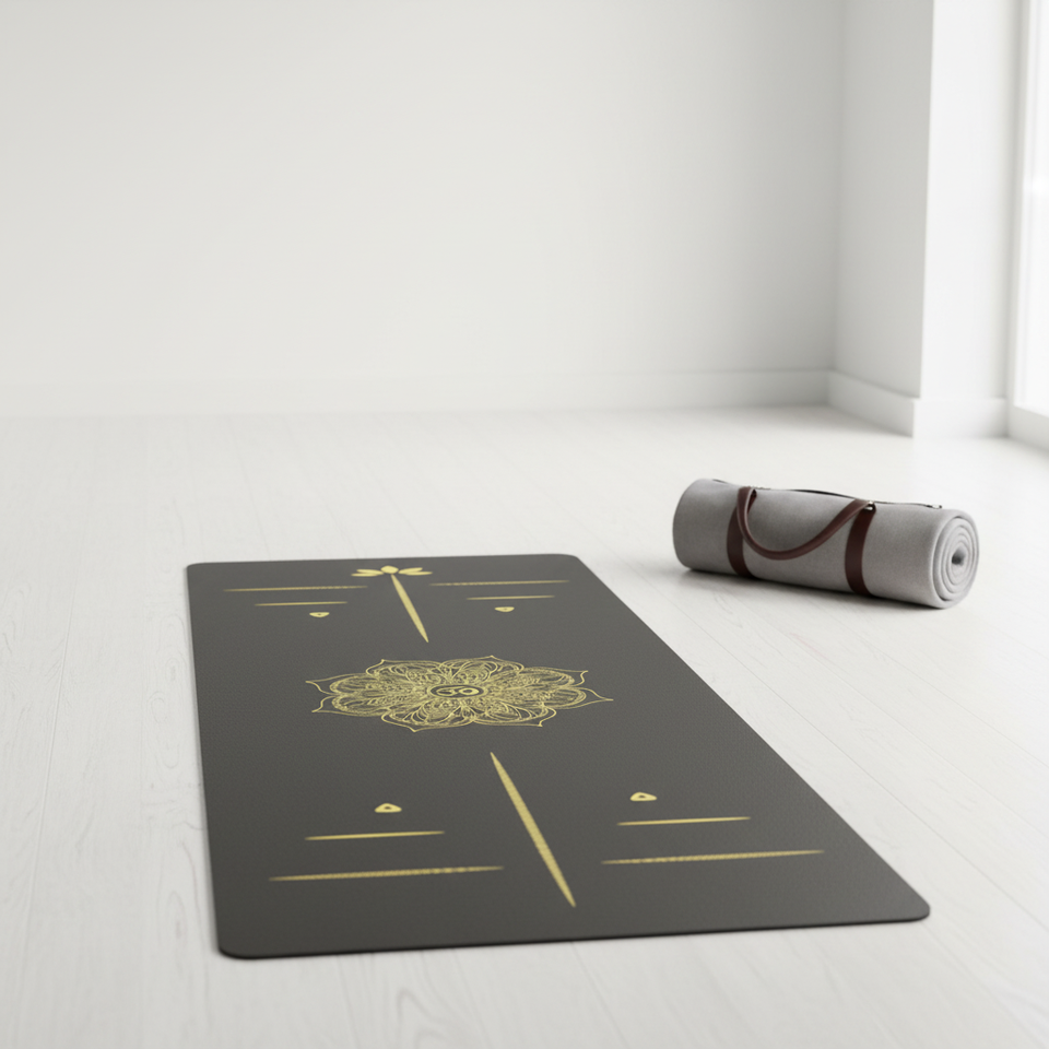 Non-Slip Rubber Yoga Mat for Beginners Gold-Stamped Luxury Design Customizable Logo 183cm Rectangular