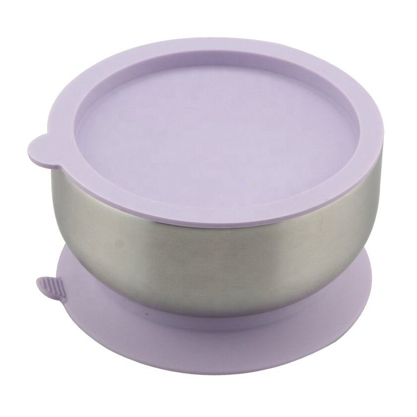 ถ้วยดูดซิลิโคนกันลื่นและช้อน ชามเด็กเล็กสแตนเลส 304 สองชั้นแบบมีฉนวน