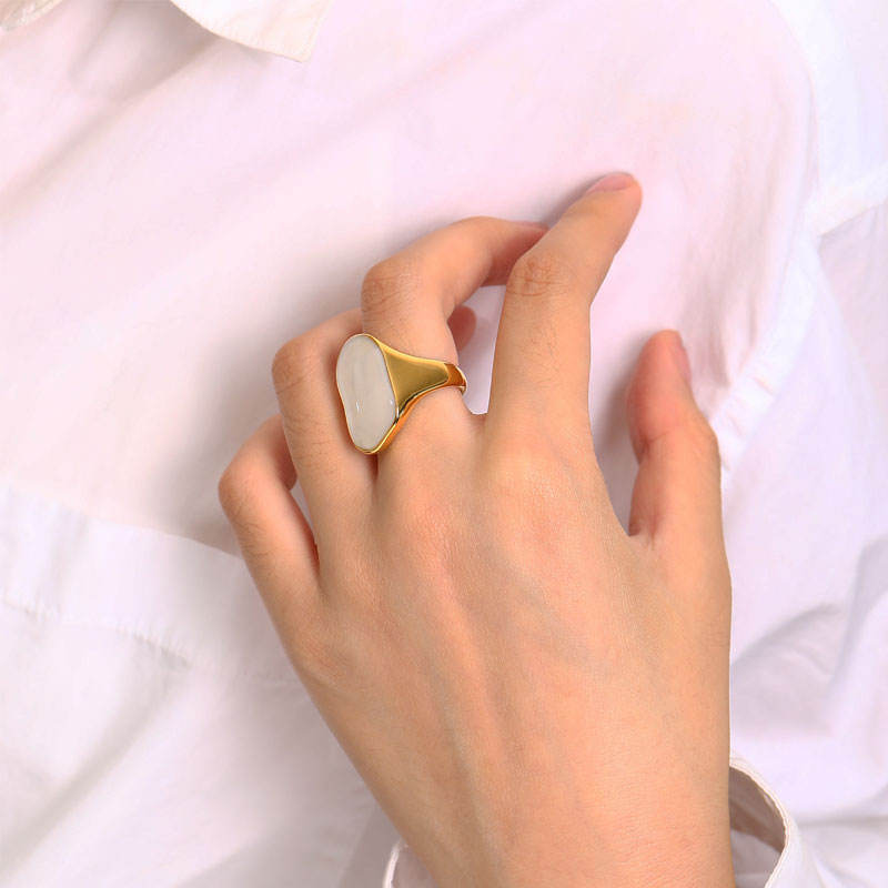 แหวนเปลือกหอยแฟชั่นสำหรับผู้หญิง ชุบทองคำแท้ 14k 18k ไม่หมอง ผลิตจากสแตนเลสสตีล 316L