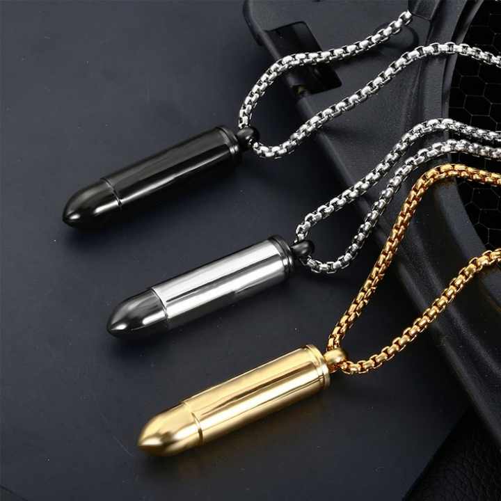 สร้อยคอจี้ทองคำแท้ 18k ไม่หมอง พร้อมสายสร้อยสแตนเลสอย่างดี ดีไซน์ทรงกระสุน สำหรับผู้ชาย