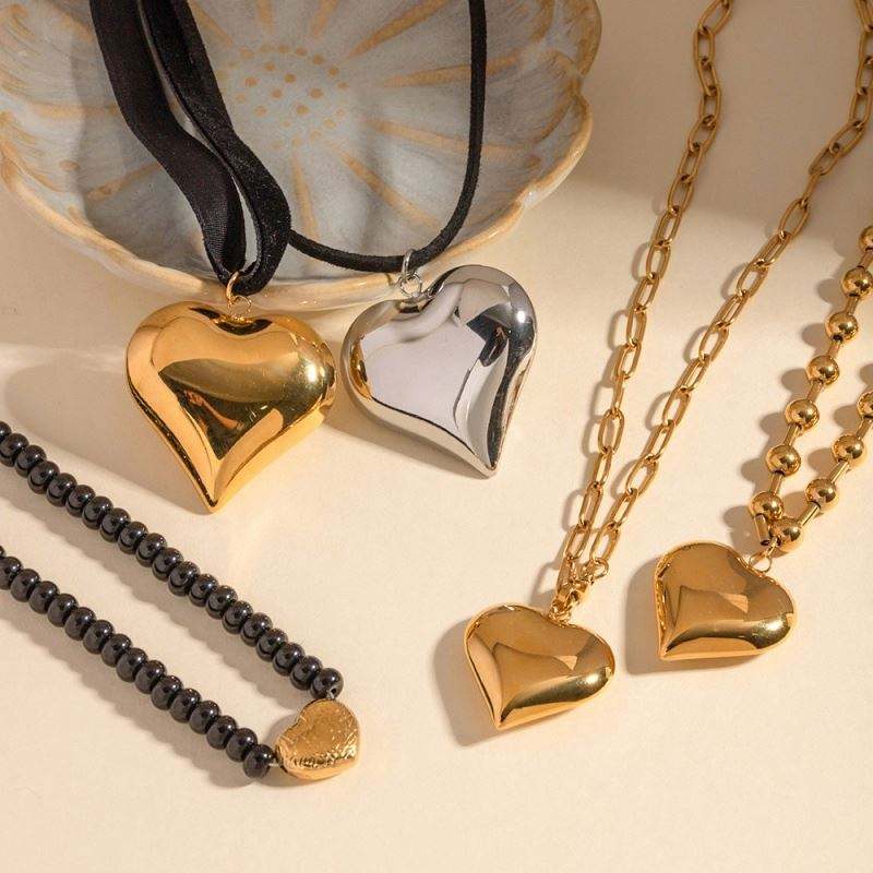 สร้อยคอโช้คเกอร์เชือกหัวใจพองสแตนเลสชุบทอง18K กันน้ำไม่เสื่อมเสีย