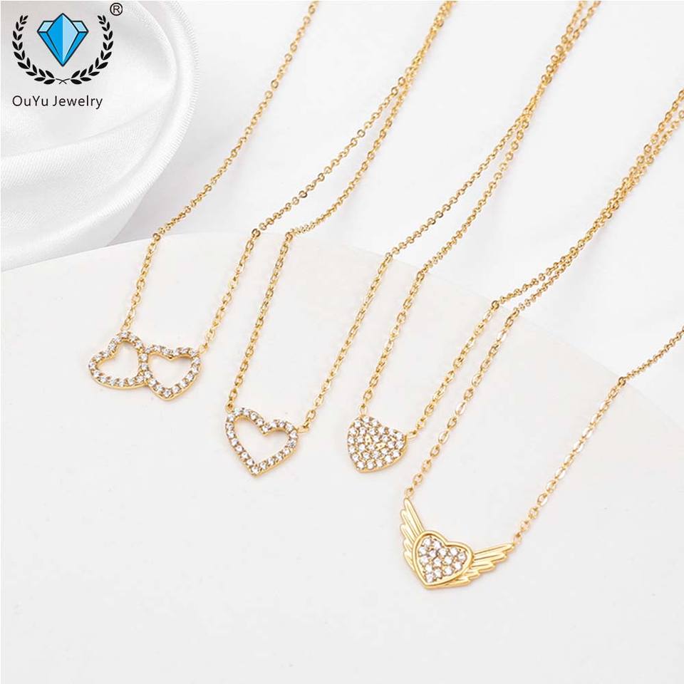 สร้อยคอจี้รูปหัวใจโปร่ง ประดับเพชรคิวบิกเซอร์โคเนีย ไม่หมอง ไม่เป็นสนิม กันน้ำ ทำจากสแตนเลส 316L เครื่องประดับแฟชั่น ขายส่ง