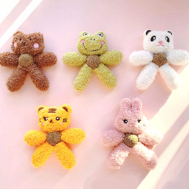 ของเล่นลูกบอลผ้ากำมะหยี่สำหรับแมวเคี้ยวได้พร้อมดีไซน์รูปสัตว์น่ารักปลอดสารพิษ