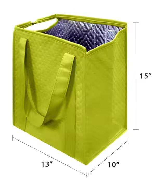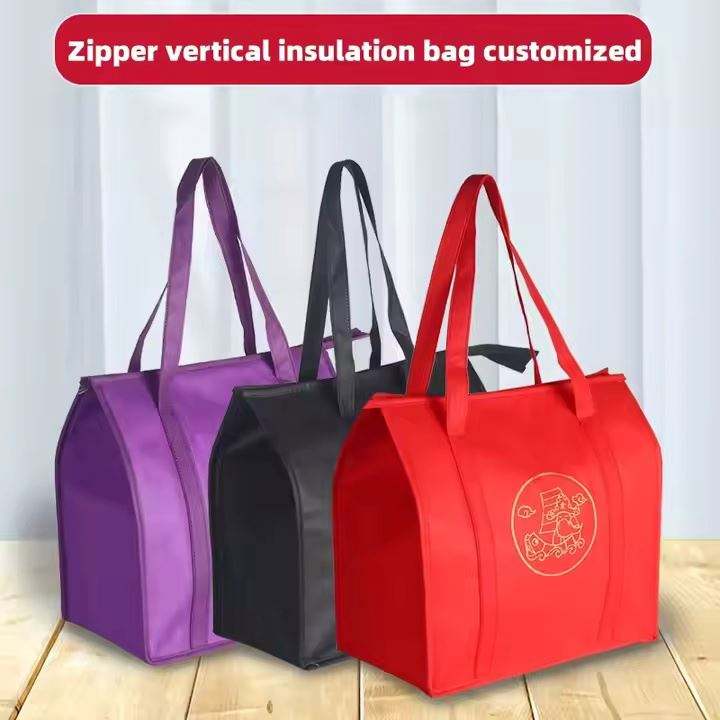 กระเป๋าเก็บความเย็นแบบใช้แล้วทิ้ง ผลิตจากวัสดุไม่ถักทอ เป็นมิตรต่อสิ่งแวดล้อม พร้อมหูหิ้วนุ่มและฉนวนกันความร้อนอะลูมิเนียมฟอยล์ สำหรับใส่กล่องอาหารกลางวัน
