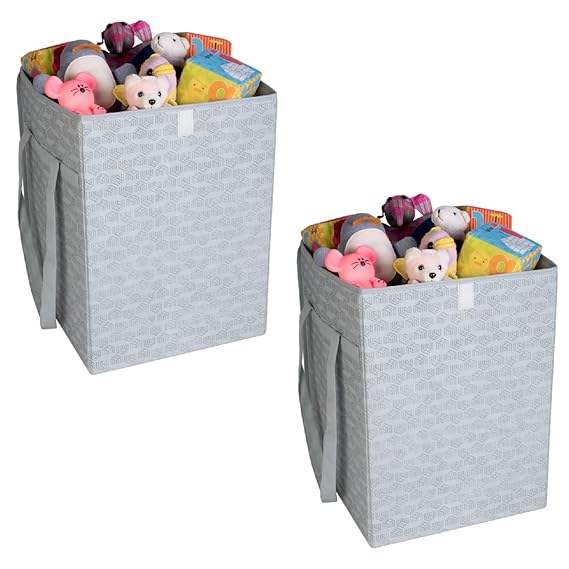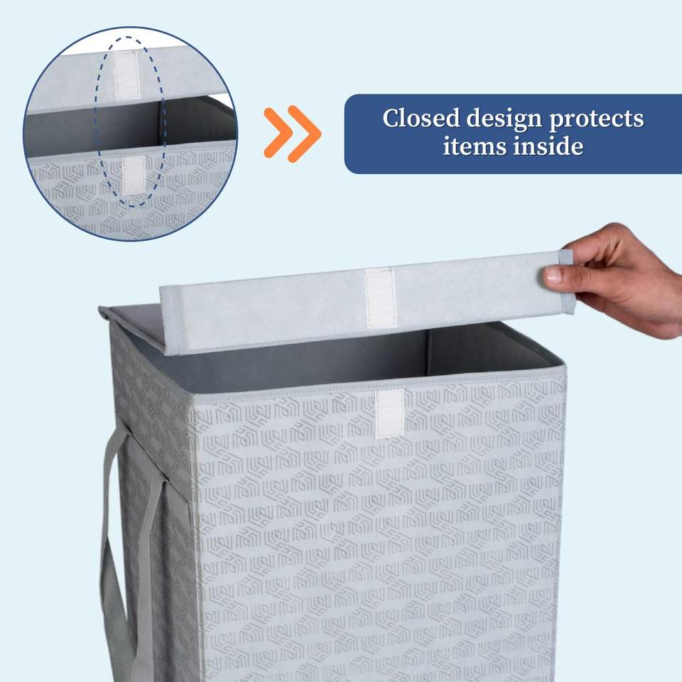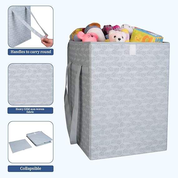 ตะกร้าผ้าแบบไม่ถักทอพร้อมฝาปิดและหูหิ้ว ขนาด 50 ลิตร พับเก็บได้ สำหรับเสื้อผ้า ผ้าขนหนู ของเล่น รองเท้า กล่องจัดเก็บแบบพับได้ แพ็ค 2 ชิ้น