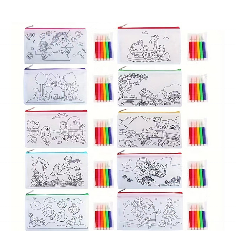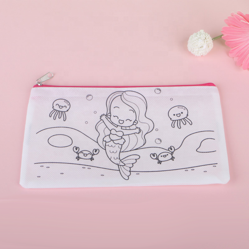 กระเป๋าผ้าใยสังเคราะห์สำหรับเด็กกระเป๋าใส่ดินสอสำหรับเด็กแบบทำมือมีซิป