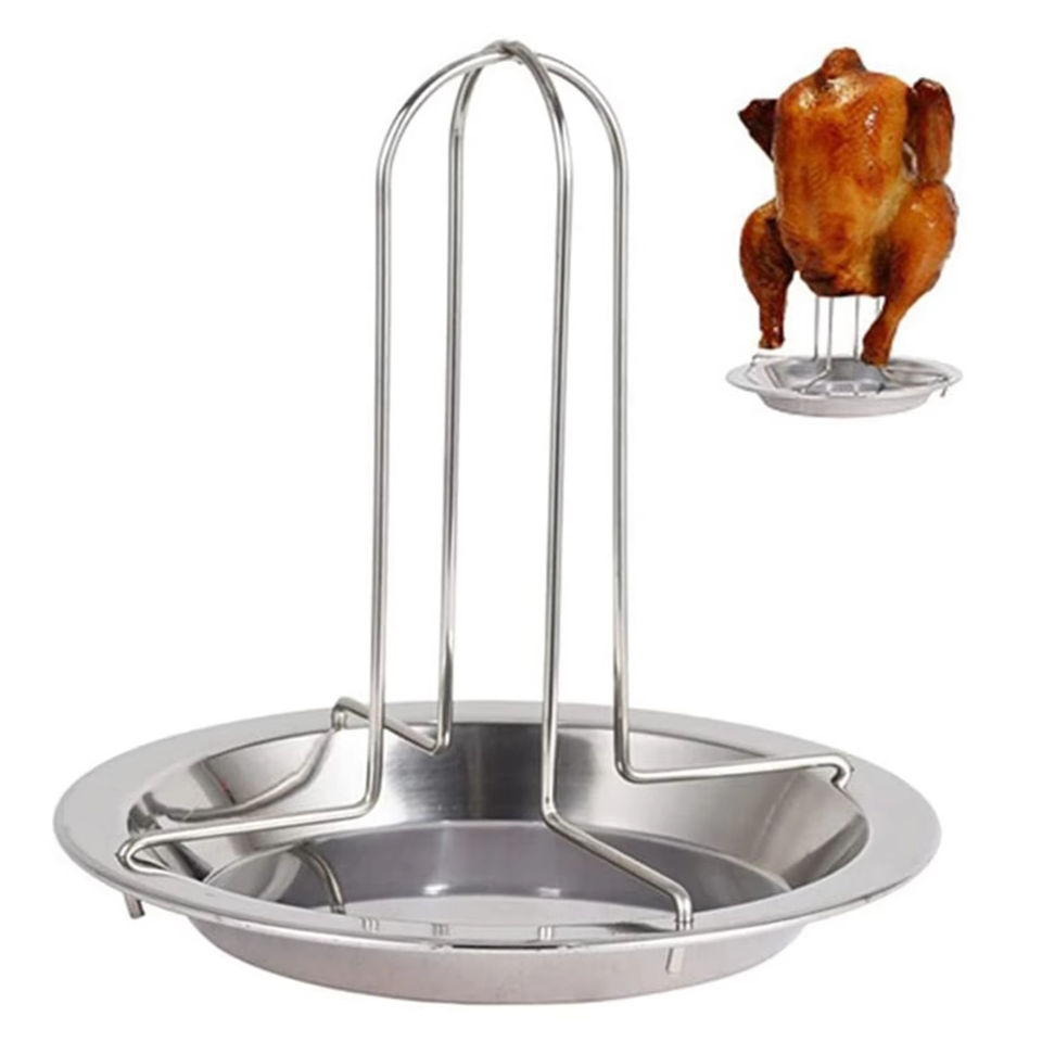 ขาตั้งย่างไก่สแตนเลสแบบไม่ติดกระทะ ทนทาน ใช้งานได้ยาวนาน พร้อมถาดรองน้ำมัน วัสดุเกรดอาหาร สำหรับย่างไก่ในเตาอบ รุ่นใหม่