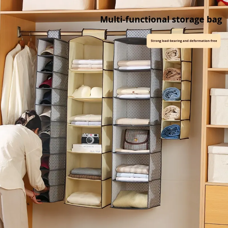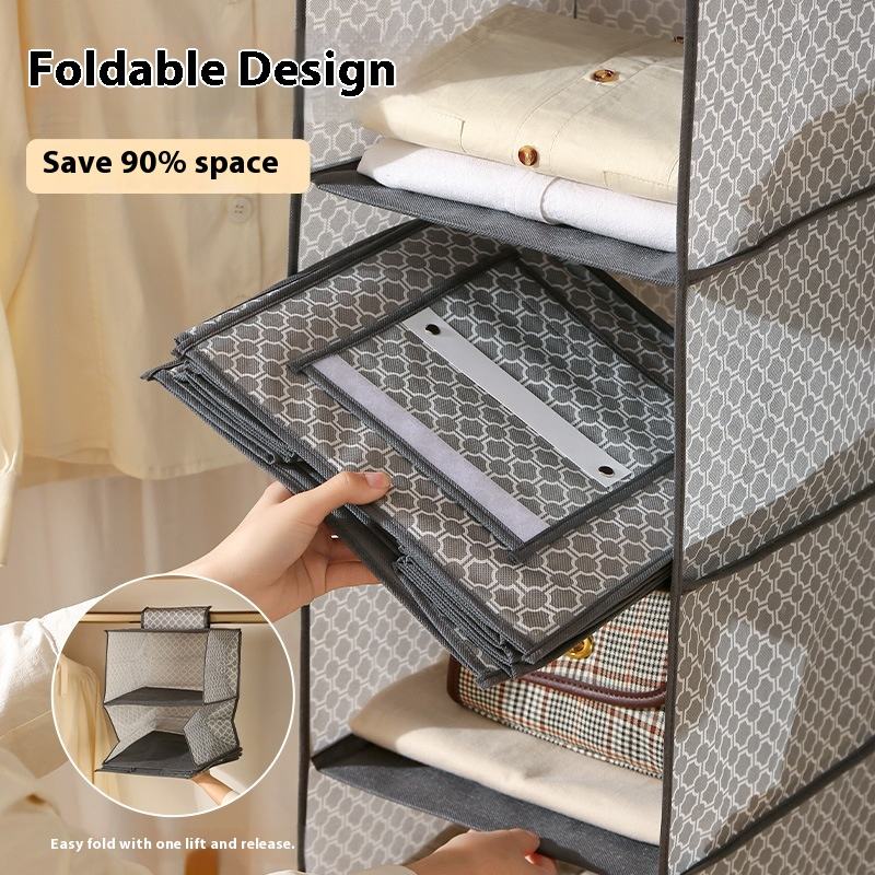 ถุงเก็บของแบบแขวนผ้าไม่ทอหลายชั้น พับได้ สำหรับเก็บชุดชั้นใน เสื้อผ้า จัดระเบียบและพับเก็บได้