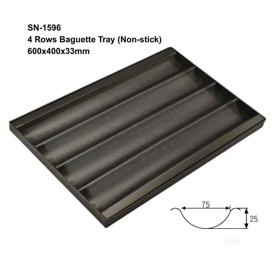 ถาดอบบาแกตต์แบบไม่ติดกระทะ 4 แถว สำหรับอบขนมปังฝรั่งเศส ถาดอบขนมปังอิตาเลียนแบบยาว มีรูพรุน อุปกรณ์อบบาแกตต์