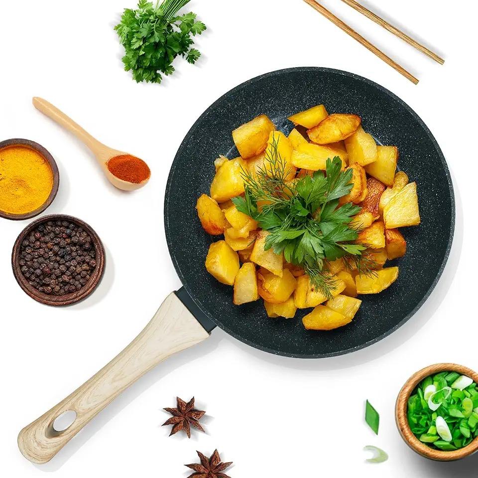 กระทะเคลือบสารกันติด พร้อมฝาแก้ว ใช้กับเตาแม่เหล็กไฟฟ้าได้ กระทะทรงลึก เคลือบลายหินอ่อน อุปกรณ์ครัว
