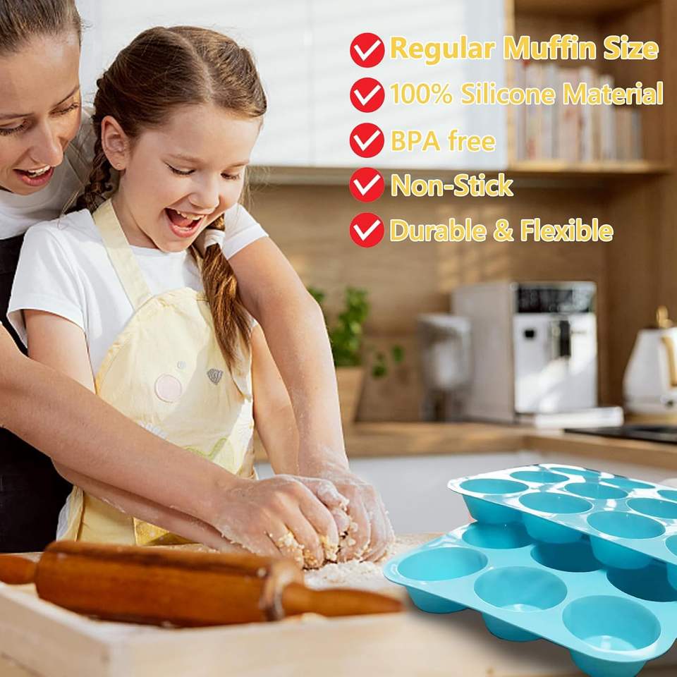 แม่พิมพ์ซิลิโคน nonstick สำหรับ cakemuffin กระทะ12ถ้วยแม่พิมพ์อบอาหารเกรด BPA-Free มัฟฟินโฮมเมดเค้กไข่กัดเครื่องมือเค้ก