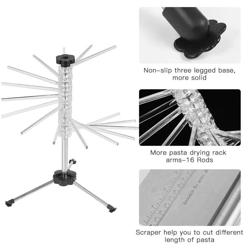 ราวตากเส้นก๋วยเตี๋ยวแบบพับได้ สแตนเลส ที่แขวนเส้นพาสต้า ที่วางเส้นก๋วยเตี๋ยวแบบแขวนในบ้าน ราวตากเส้นพาสต้า