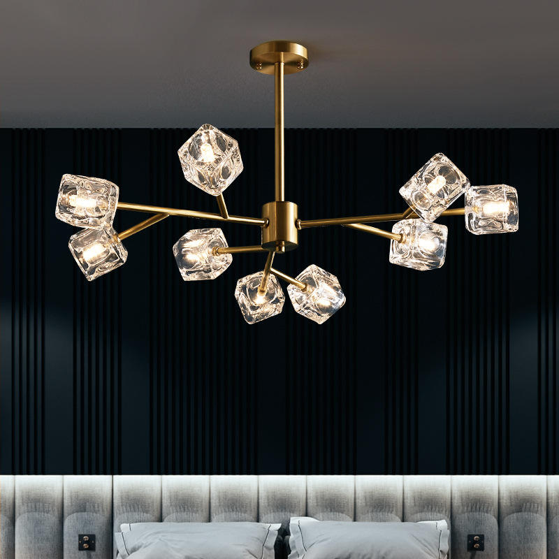 โคมไฟระย้าคริสตัลสไตล์นอร์ดิก ทำจากทองแดงทั้งชิ้น ดีไซน์มินิมอล โพสต์โมเดิร์น ให้แสงสว่างแบบ LED หรูหรา สง่างาม เหมาะสำหรับห้องนั่งเล่น ห้องรับประทานอาหาร