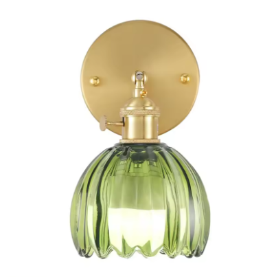 โคมไฟติดผนังรูปดอกทิวลิปแบบใช้แบตเตอรี่สไตล์นอร์ดิก โคมแก้ว ไฟติดผนังแบบชาร์จไฟได้ พร้อมรีโมทคอนโทรลไร้สาย หลอดไฟ LED