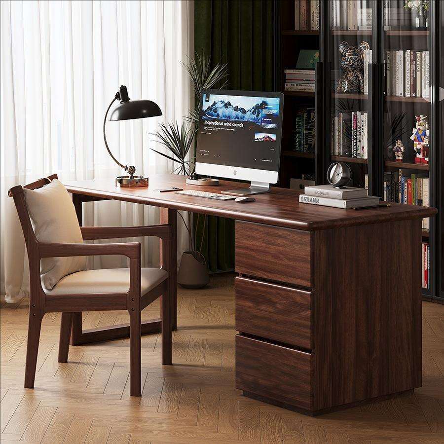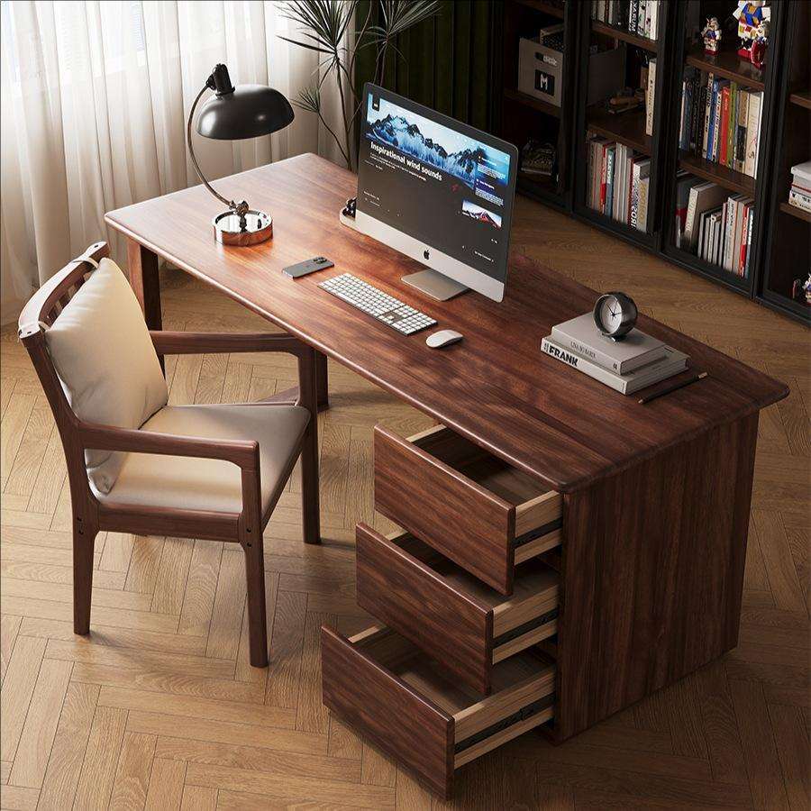 โต๊ะทำงานไม้วอลนัทสไตล์นอร์ดิกจีน โต๊ะคอมพิวเตอร์ทันสมัยเรียบง่าย สำหรับใช้ในบ้าน ห้องอ่านหนังสือ ชุดเฟอร์นิเจอร์สำนักงาน