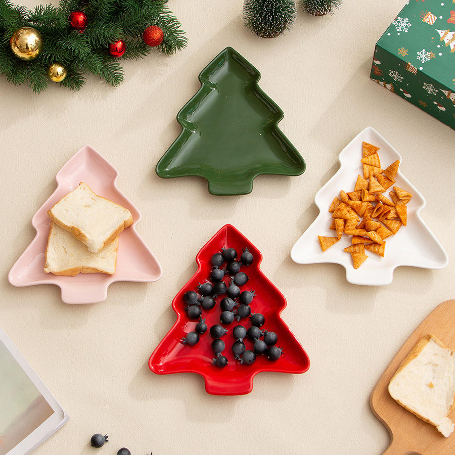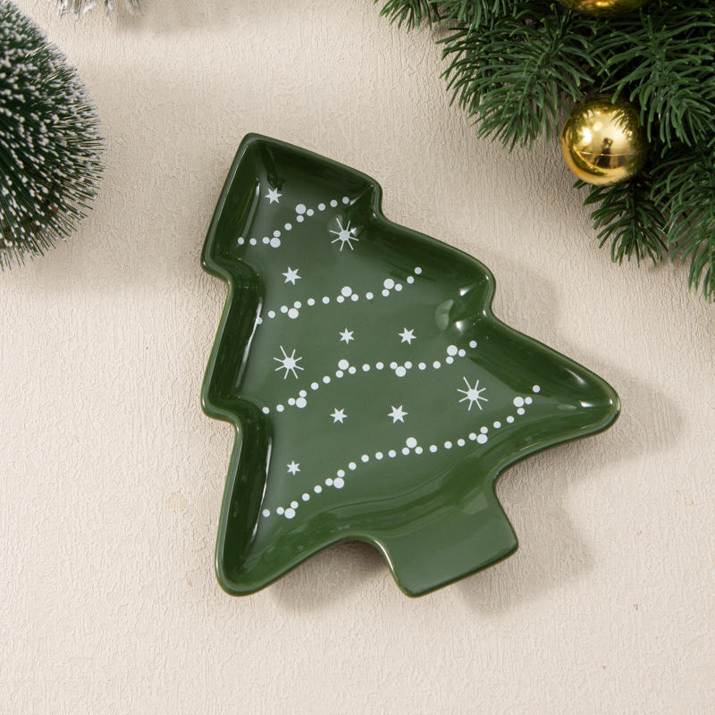 จานเซรามิกรูปดาวสีแดงเขียวสำหรับใส่ขนมตกแต่งโต๊ะในวันหยุดคริสต์มาสสไตล์นอร์ดิก