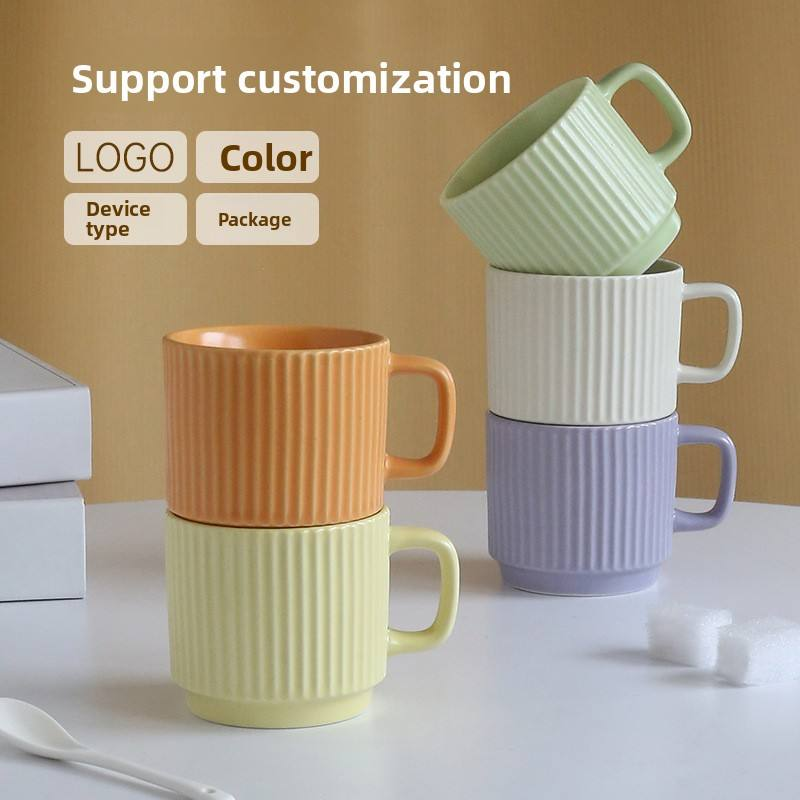 แก้วมักเซรามิกลายขนมมาการองแบบนอร์ดิกน่ารักพร้อมลายทางดีไซน์เรียบๆเก็บความร้อนเย็นน้ำเบียร์นมใส่กล่องใส่ของขวัญ