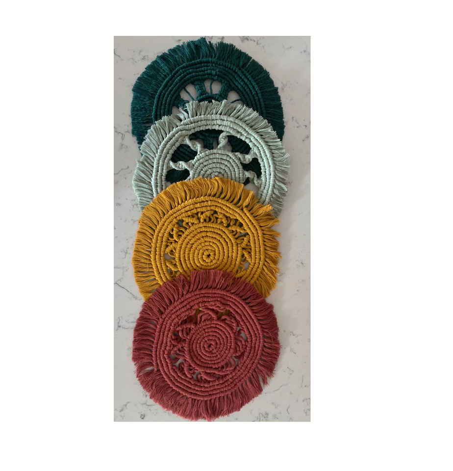 แผ่นรองจานกลมลายโบฮีเมียนมาคราเมมแผ่นรองแก้วสำหรับตกแต่งโต๊ะแบบธรรมชาติ