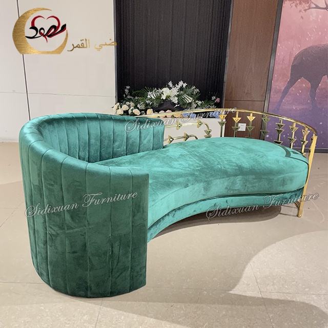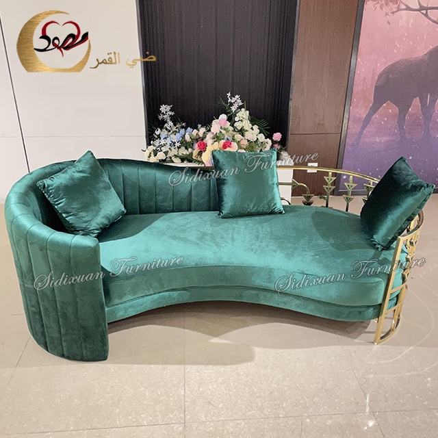 โซฟาสามที่นั่งสไตล์นอร์ดิก ดีไซน์แบบทัฟท์ โครงเหล็กสแตนเลสสไตล์ยุโรป หุ้มกำมะหยี่สีเขียวมรกต เหมาะสำหรับห้องนั่งเล่น อพาร์ทเมนท์ โรงแรม และห้องรับประทานอาหาร
