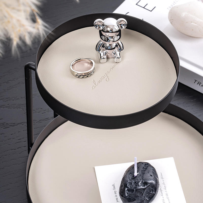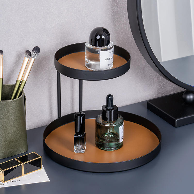 ชั้นวางของทรงกลมแบบตั้งพื้นสองชั้น ทำจากเหล็กดัดและหนัง สไตล์นอร์ดิก สำหรับเก็บเครื่องสำอาง เครื่องประดับ และของตกแต่ง