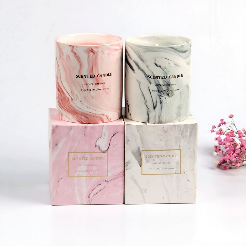 แก้วเซรามิคลายหินอ่อนสไตล์นอร์ดิกสุดหรู พร้อมเทียนหอมจากถั่วเหลืองธรรมชาติ ของขวัญสุดเก๋สำหรับสาวๆ ตกแต่งบ้านอย่างมีสไตล์