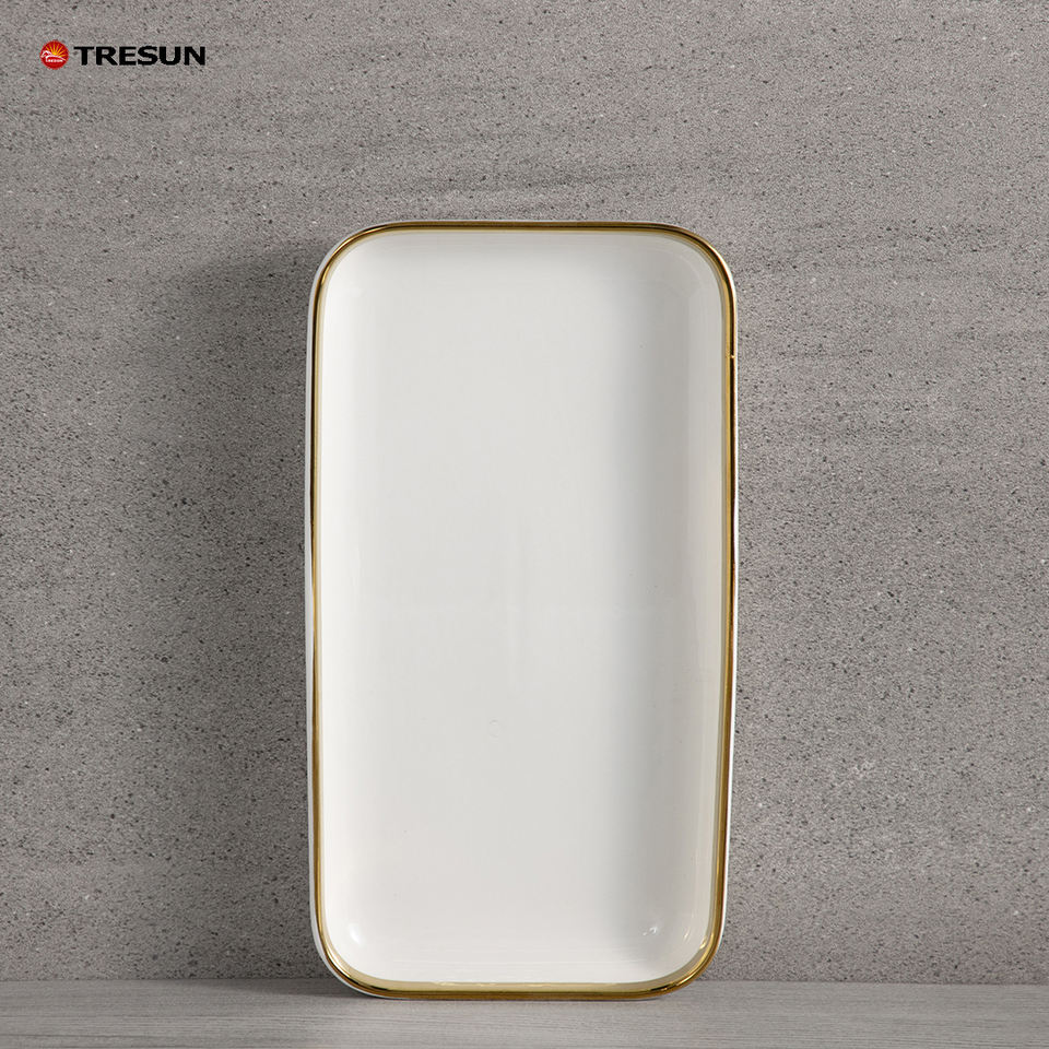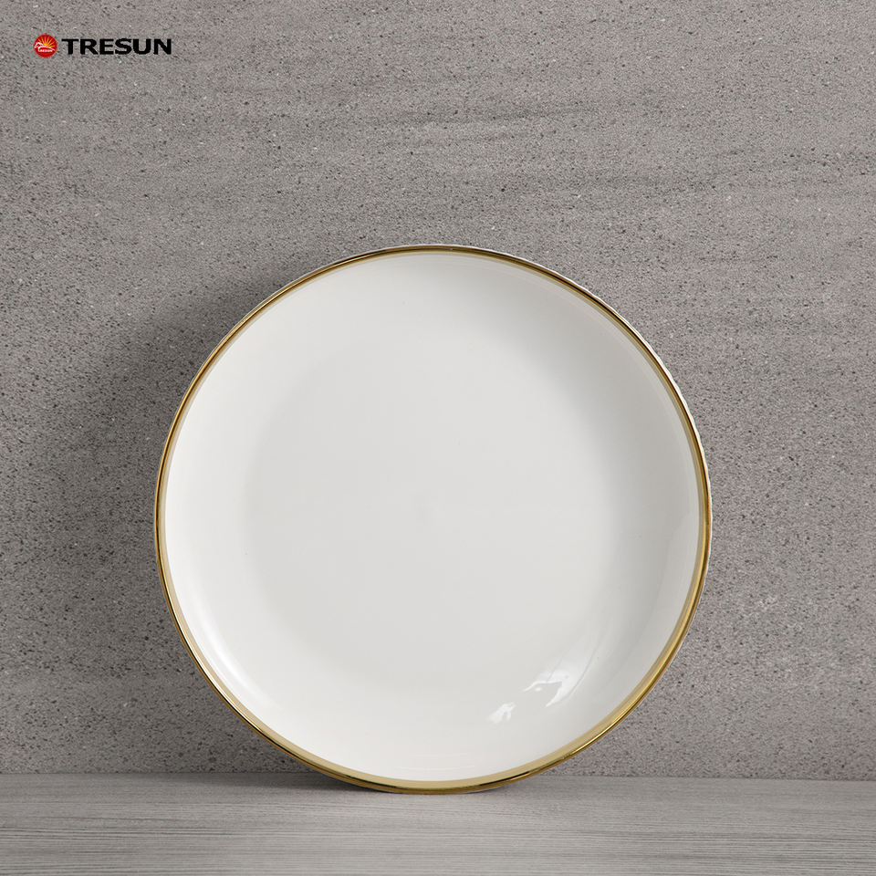 ชุดจานชามเซรามิกเคลือบด้านสีขาวขอบทองสไตล์นอร์ดิก เป็นมิตรกับสิ่งแวดล้อม ใช้กับเครื่องล้างจานได้