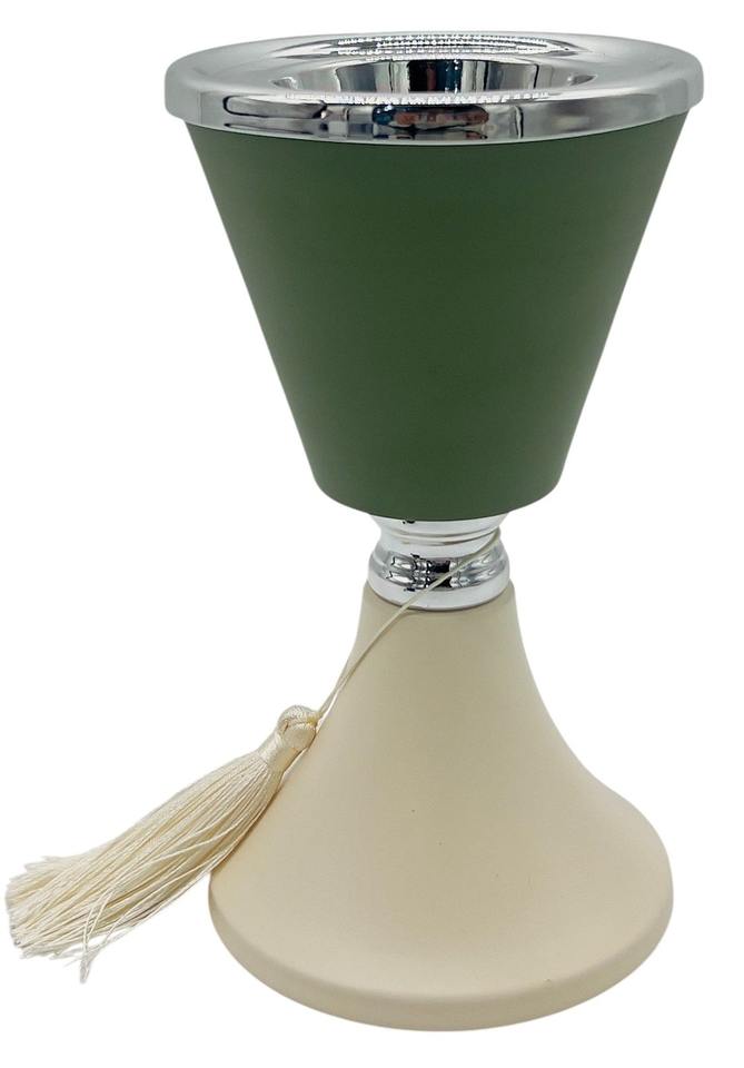 เตาเผาบาคูร์สีเขียวสไตล์นอร์ดิก ฐานครีม ประดับพู่ห้อย แบบมาบคาฮาร์ สำหรับธูปอู๊ดแบบอาหรับ เหมาะสำหรับบ้านสมัยใหม่ในตะวันออกกลางและอ่าวเปอร์เซีย