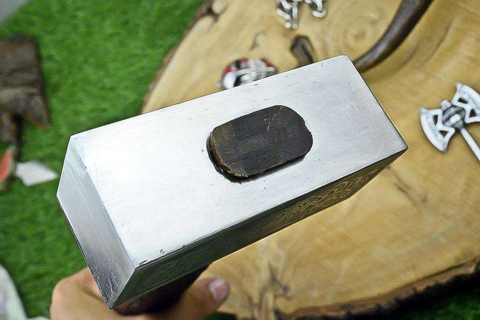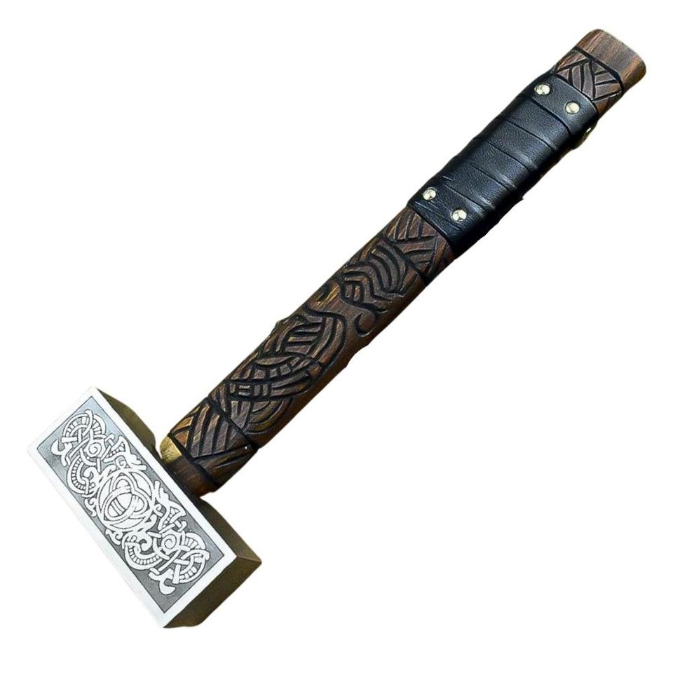 ค้อนนอร์ดิกแฮนด์เมด พร้อมด้ามจับแกะสลักลายไวกิ้ง ค้อนยุคกลางพร้อมสัญลักษณ์วาลคนัท ค้อนนอร์ส ของขวัญสุดพิเศษสำหรับเขา