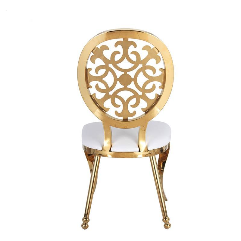 เก้าอี้บัลลังก์สแตนเลสสตีลด้านหลังสูงสีทองสไตล์นอร์ดิกสำหรับงานปาร์ตี้งานแต่งงานโรงแรมหรือบ้านไร่สำหรับใช้ในห้องครัว