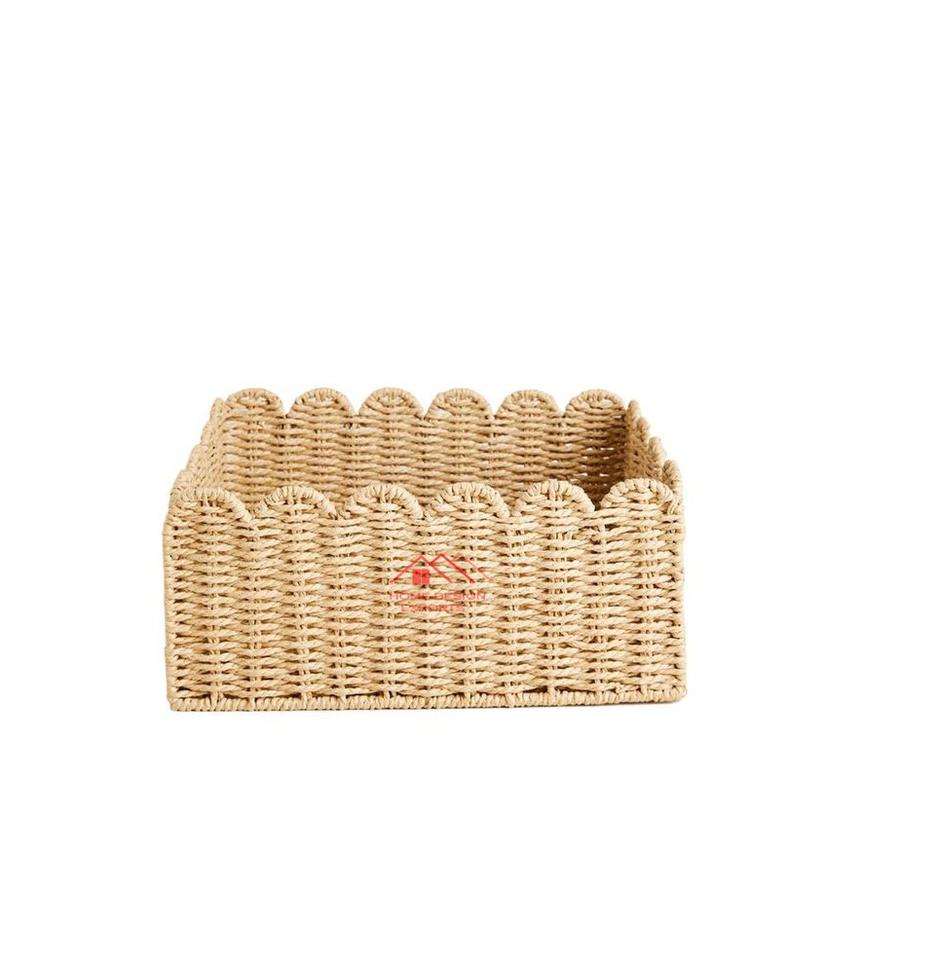ตะกร้าหวายสานแฮนด์เมดทรงสี่เหลี่ยมพร้อมหูจับแบบสอดดีไซน์ใหม่สไตล์นอร์ดิก