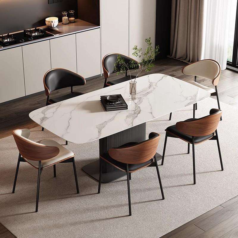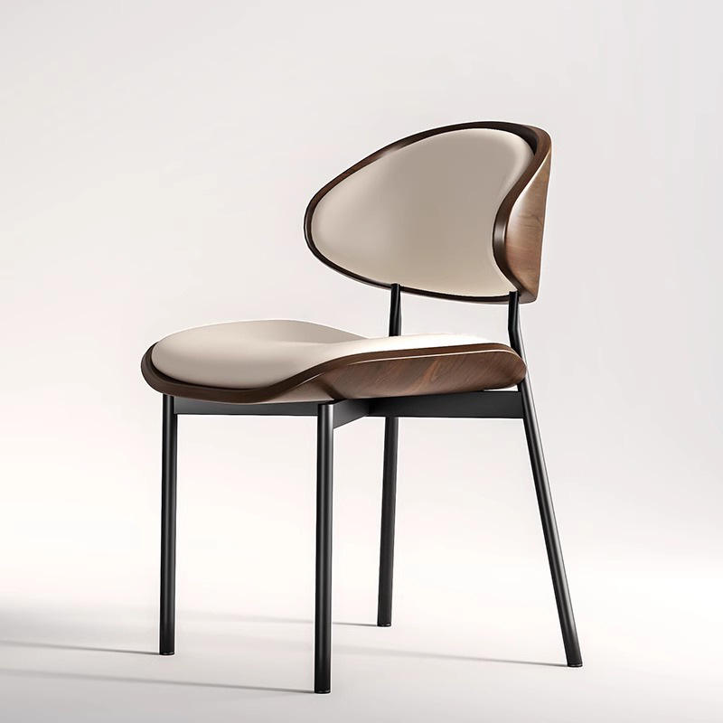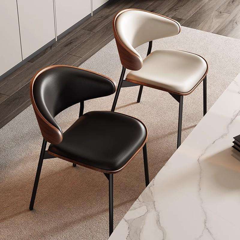 เก้าอี้รับประทานอาหารสไตล์นอร์ดิกหรูหรา โครงไม้เนื้อแข็ง เบาะหนัง พนักพิงโค้ง ขาโลหะ เหมาะสำหรับบ้าน ร้านอาหาร ร้านกาแฟ โรงแรม