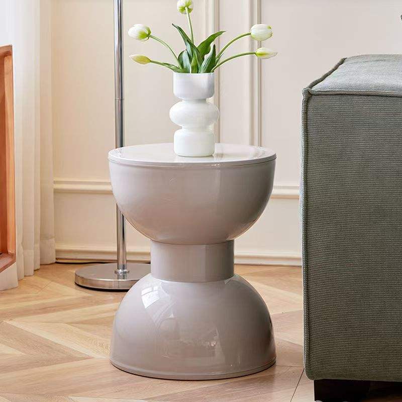 เก้าอี้พลาสติกทรงเตี้ยสไตล์นอร์ดิก สีครีม สำหรับห้องรับประทานอาหาร ห้องนั่งเล่น โต๊ะกาแฟ เก้าอี้กลม เก้าอี้เปลี่ยนรองเท้าหน้าประตู