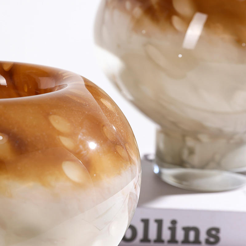 Nordic Medieval High-foot Glass Vase with Gradient Colored Glaze Coastal Desktop Flower Ornaments Decorations Mushroom Style