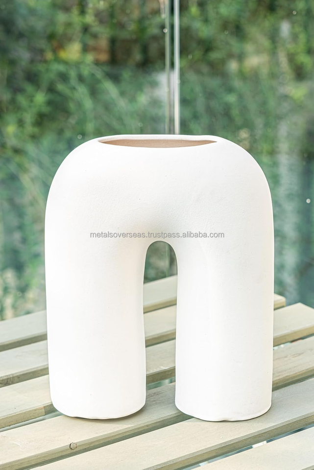 แจกันเซรามิกรูปทรงโค้งสไตล์นอร์ดิกสีขาวทันสมัยแจกันเครื่องปั้นดินเผารูปตัวยูสำหรับตกแต่งโต๊ะในบ้าน