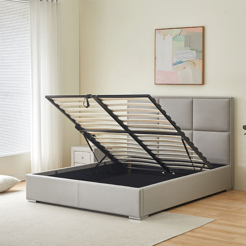 เตียงหุ้มผ้าสไตล์มินิมอลแบบนอร์ดิก สำหรับห้องนอนโรงแรม เตียงแบบประกอบได้ ขายตรงจากโรงงาน
