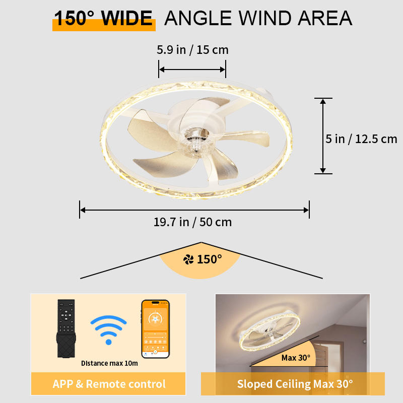 พัดลมอะคริลิค LED สไตล์นอร์ดิกมินิมอล 5 ใบพัด 6 ระดับความเร็วลม พร้อมรีโมทคอนโทรล มอเตอร์ DC เงียบ ปรับความสว่างได้แบบไม่มีขั้นตอน เหมาะสำหรับใช้ในห้องนอน
