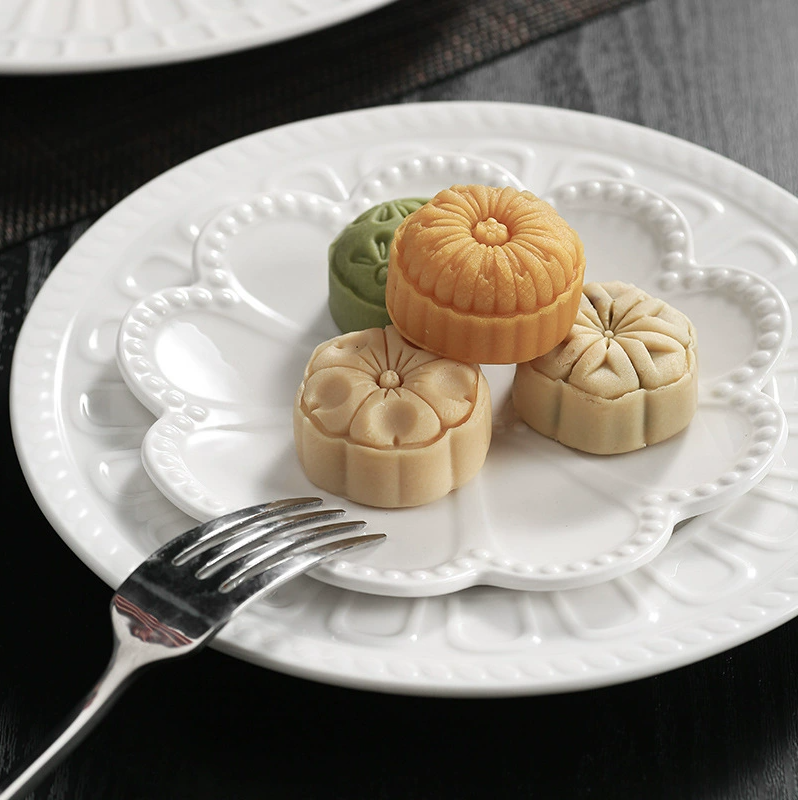 จานเค้กพอร์ซเลนสไตล์นอร์ดิกมินิมอลลิสต์ ลายลายนูนทันสมัย เป็นมิตรกับสิ่งแวดล้อม เหมาะสำหรับร้านอาหาร โรงแรม งานแต่งงาน ขายส่ง