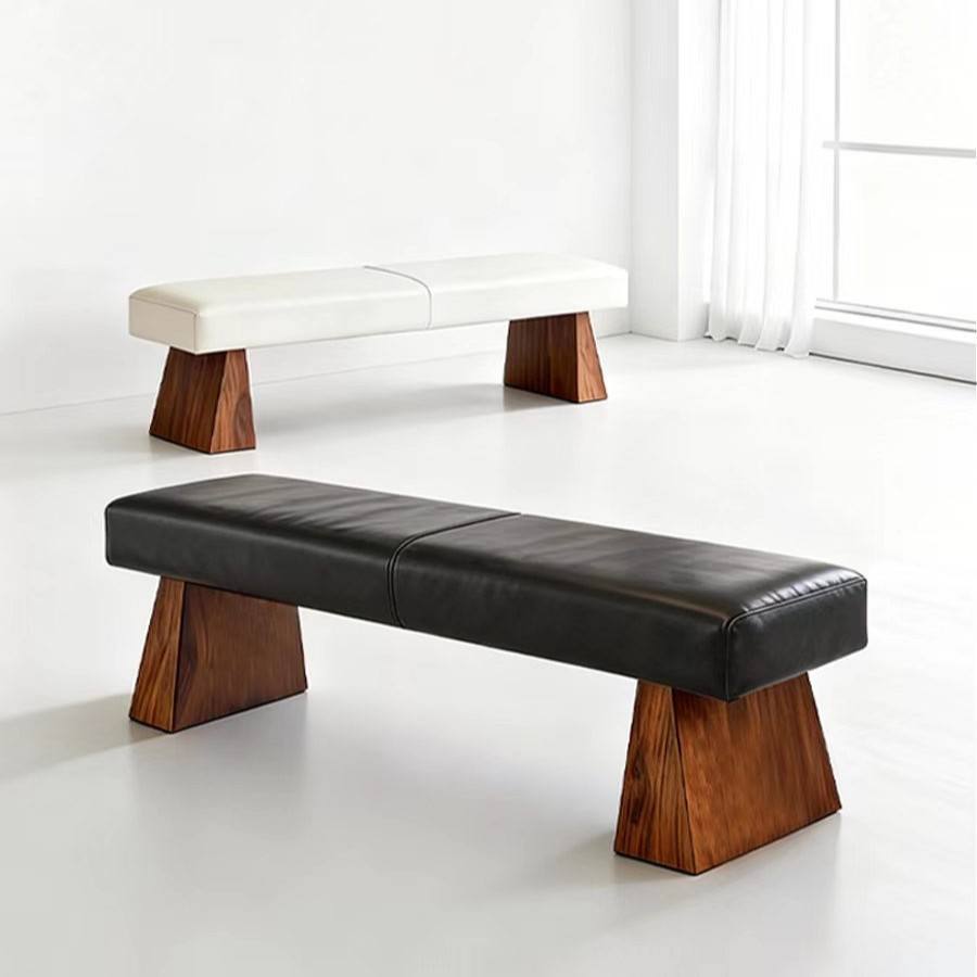 ม้านั่งไม้เนื้อแข็งสไตล์นอร์ดิกมินิมอล หุ้มหนังแท้ สำหรับเปลี่ยนรองเท้าหน้าประตู ห้องนั่งเล่น ห้องนอน ปลายเตียง ดีไซน์เนอร์