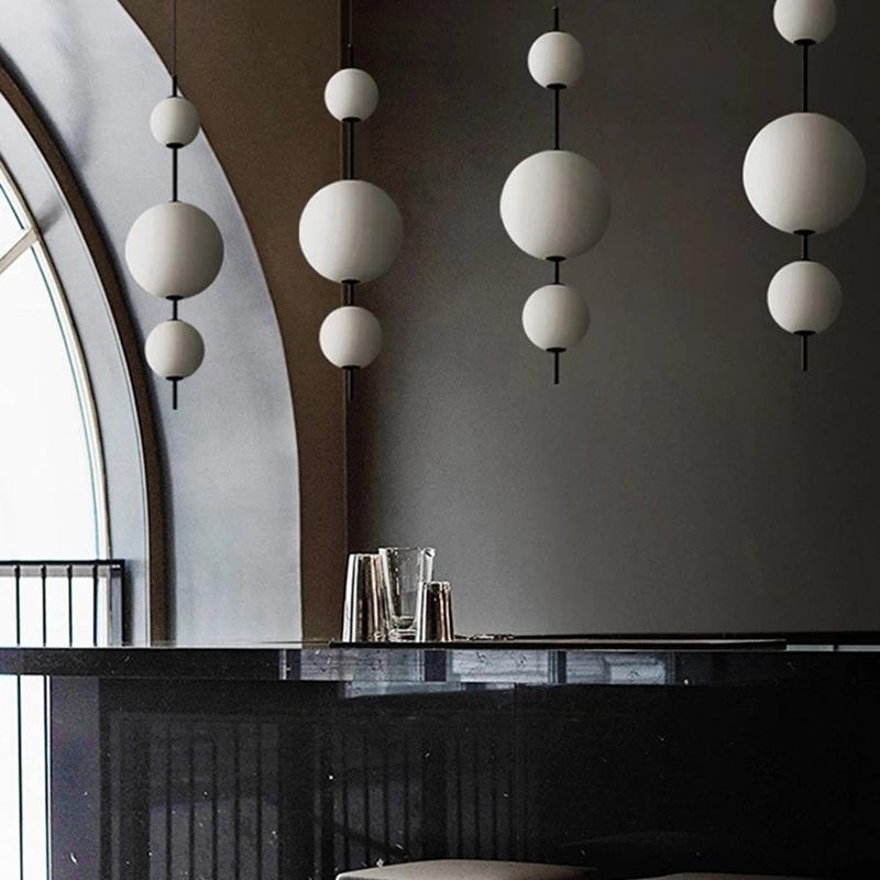 โคมไฟระย้าทรงกลมแก้ว LED สไตล์นอร์ดิกมินิมอลสุดหรู สำหรับห้องนั่งเล่นหรือห้องนอน
