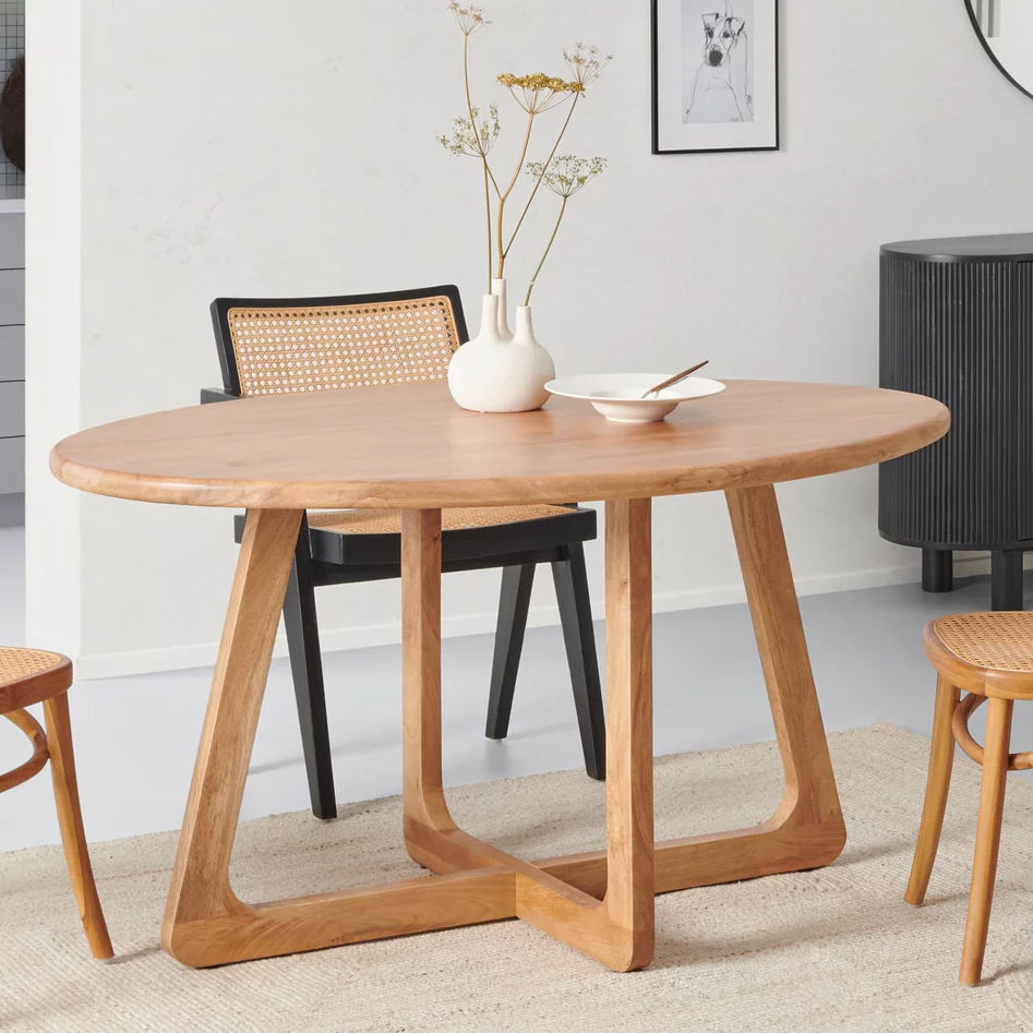 โต๊ะรับประทานอาหารทรงวงรีขอบโค้งมน ทำจากไม้เนื้อแข็งอะคาเซีย สไตล์นอร์ดิก โมเดิร์น คอนเทมโพรารี่ ตกแต่งผิวแบบธรรมชาติ เหมาะสำหรับใช้ในบ้านและร้านอาหาร