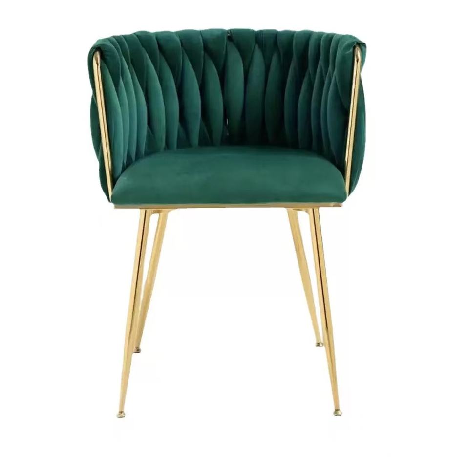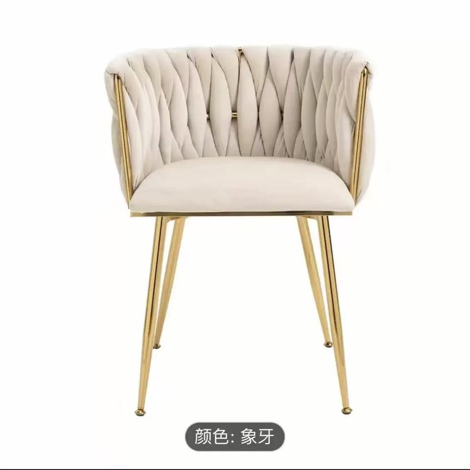 เก้าอี้รับประทานอาหารหุ้มกำมะหยี่ขาโลหะสีทองสไตล์นอร์ดิกโมเดิร์นหรูหราสำหรับห้องครัวร้านอาหาร